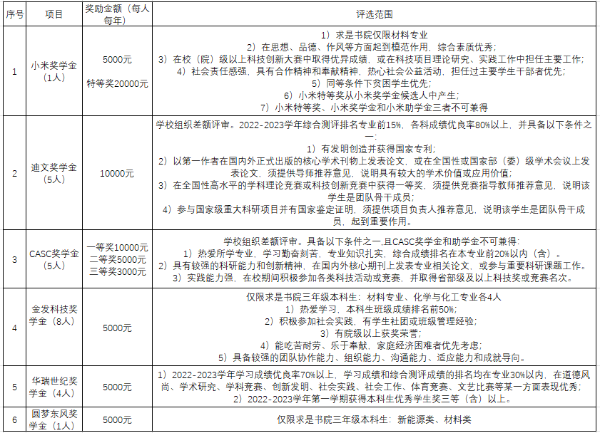 现开展2023年社会捐助类奖助学金(部分)的评选推荐工作,有关事宜通知如下。