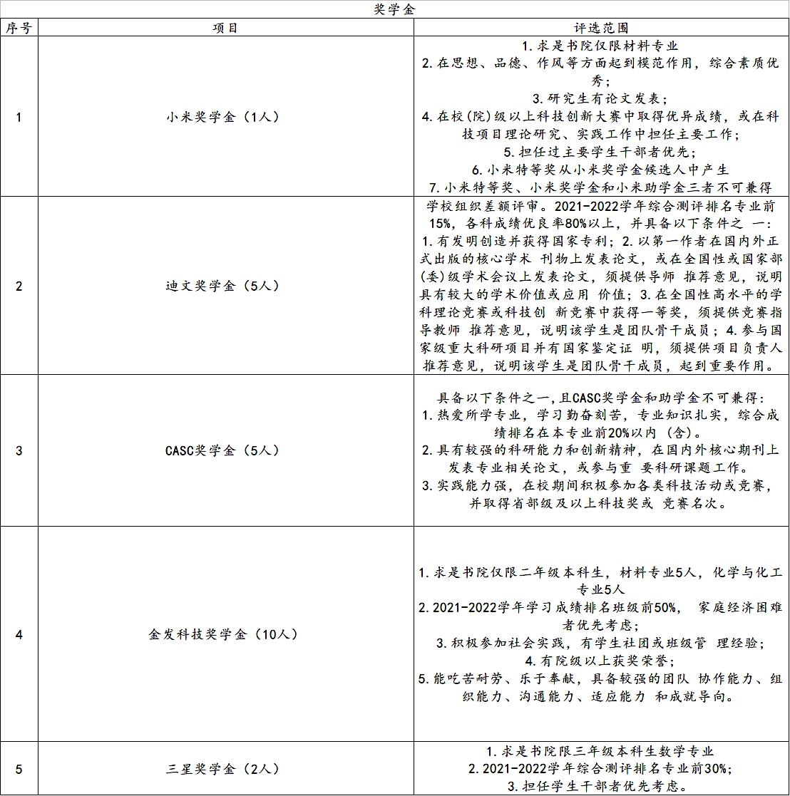 4.金发科技奖学金:本科生5000元/人,研究生8000元/人;